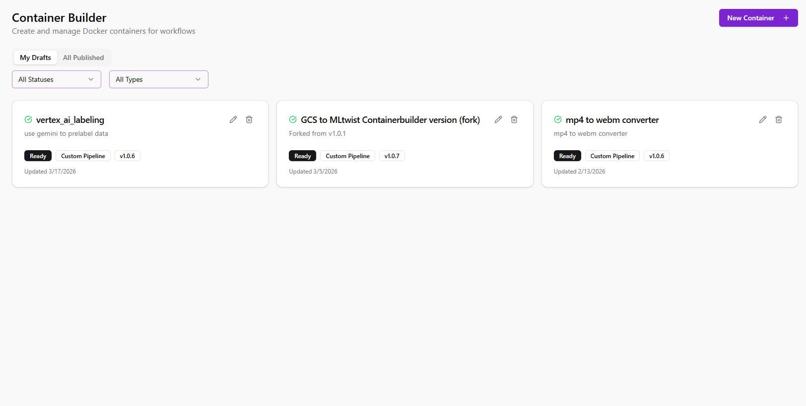 Use prebuilt containers or customize them to your workflow