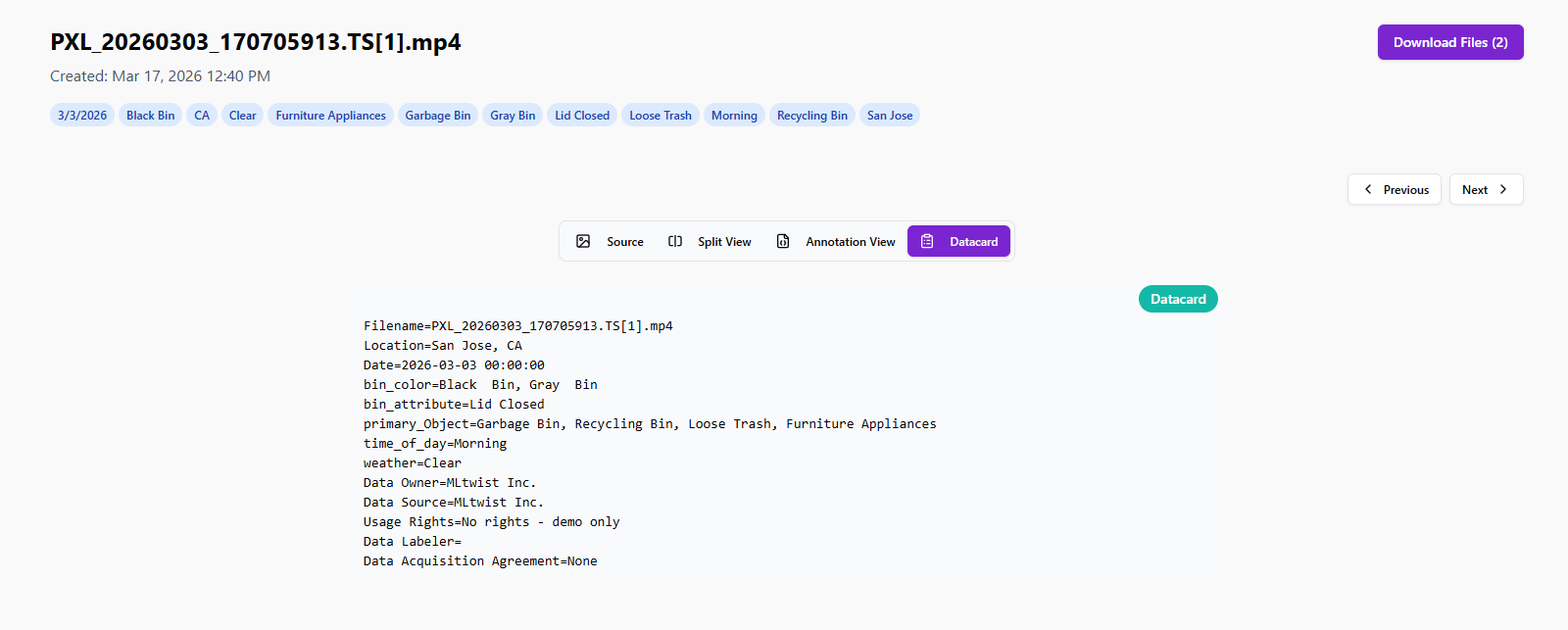 View and download datacards for versioning and audits