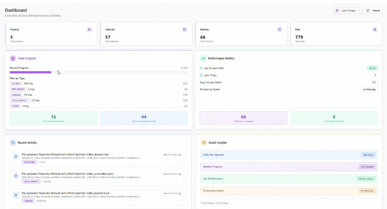 MLtwist provides automated and human-in-the-loop quality assurance, including anomaly detection, visual comparisons, and approval workflows, ensuring datasets are accurate, consistent, and production-ready.